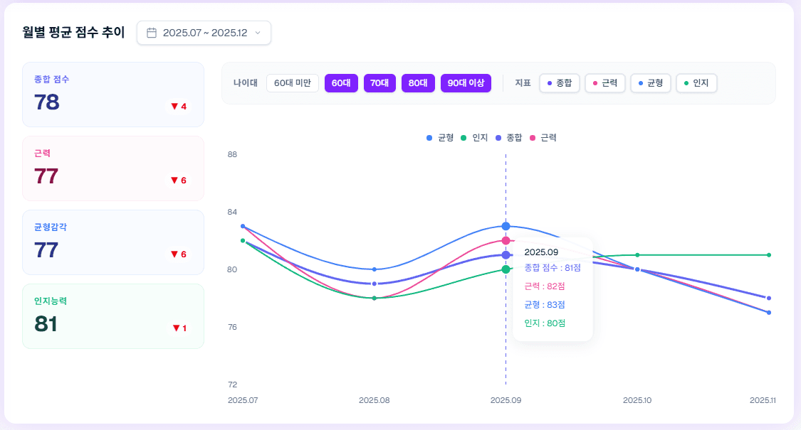 보호자용 리포트 공유 및 회원별 대시보드 기능을 통해 맞춤형 관리 가능